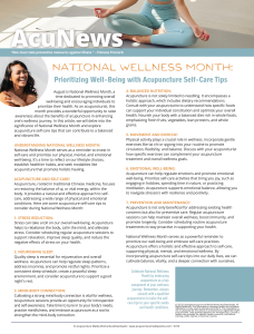 Canva Template Newsletter Prioritizing Well-Being with Acupuncture Self-Care Tips The National Wellness Month newsletter, “Prioritizing Well-Being with Acupuncture Self-Care Tips,” offers valuable insights and practical